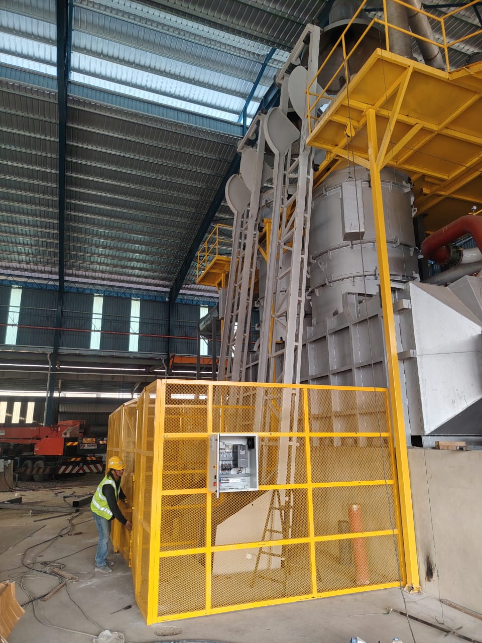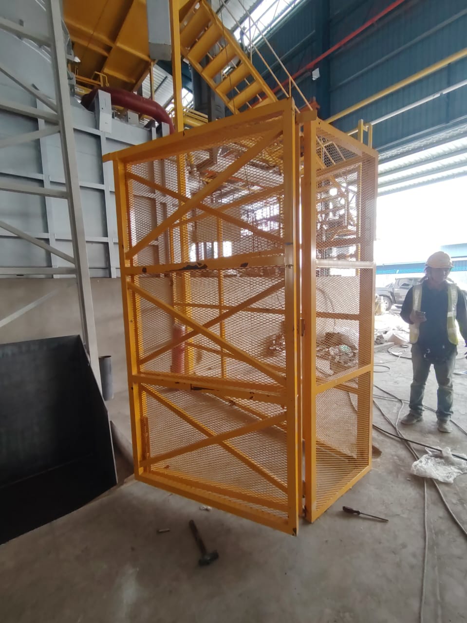 - Safety fence & door : Skip hoist is surrounded by a 2440mm high fence and door to prevent accidental entry during machine operation